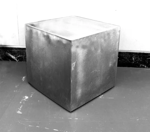 On the exterior, the Geode Chair reads as a solid platonic object. Its cold, weathered metal surface serves the purpose of a modern tabletop, placed in the center of a room and experienced in the round, or tucked away to minimize its impact in a smaller space.