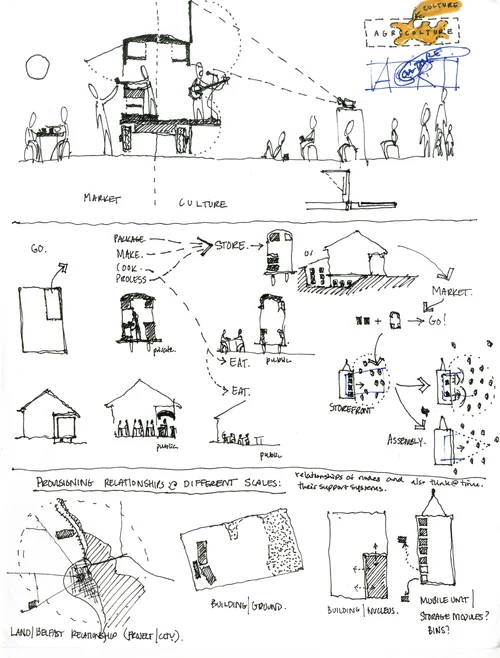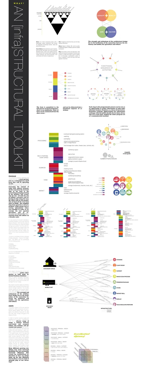 Farmers need an [infra]structure that addresses these cultural imperatives, a system that includes mobile vending space, a value-added kitchen, and community event area. In essence, they need a new toolkit, which gives them the ability to be grounded in place, yet mobile and agile, profitable, engaging and informative.